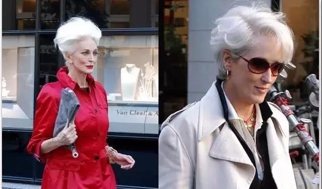 看过《穿Prada的女魔头》电影的人应该对卡门的这头标志性银发都不陌生,电影里面的女主编正巧也是一头银发有一种“凌厉的优雅”.即使慢慢变老卡门也是一如既往优雅如初她就是一本活生生的教科书,告诉我们,女人应该如何优雅地老去.