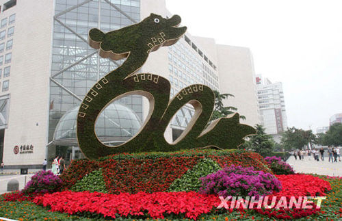 9月5日在北京西单路口拍摄的“巨龙腾飞”花坛。