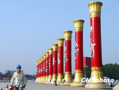 天安门广场竖起民族团结柱 能抗瞬间11级风