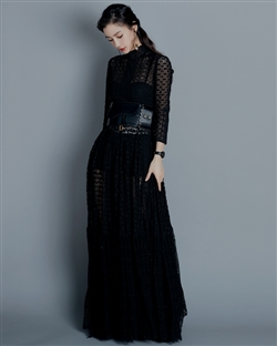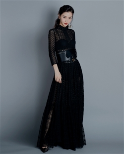 12月18日,Angelababy身穿一袭黑色蕾丝礼裙现身盛典,紧身上衣与飘逸罗裙相得益彰,皮革宽腰带勾勒玲珑腰线,神秘中不失妩媚。轻盈交叠的黑色蕾丝缀饰着连衣长裙,带来玩味通透质感,精致而柔美。采用纯黑设计,一点一滴的蕾丝刺绣细节都独显巧思,搭配皮革宽腰带让baby的细腰曲线更为突出,完美诠释个性斐然的时尚感。